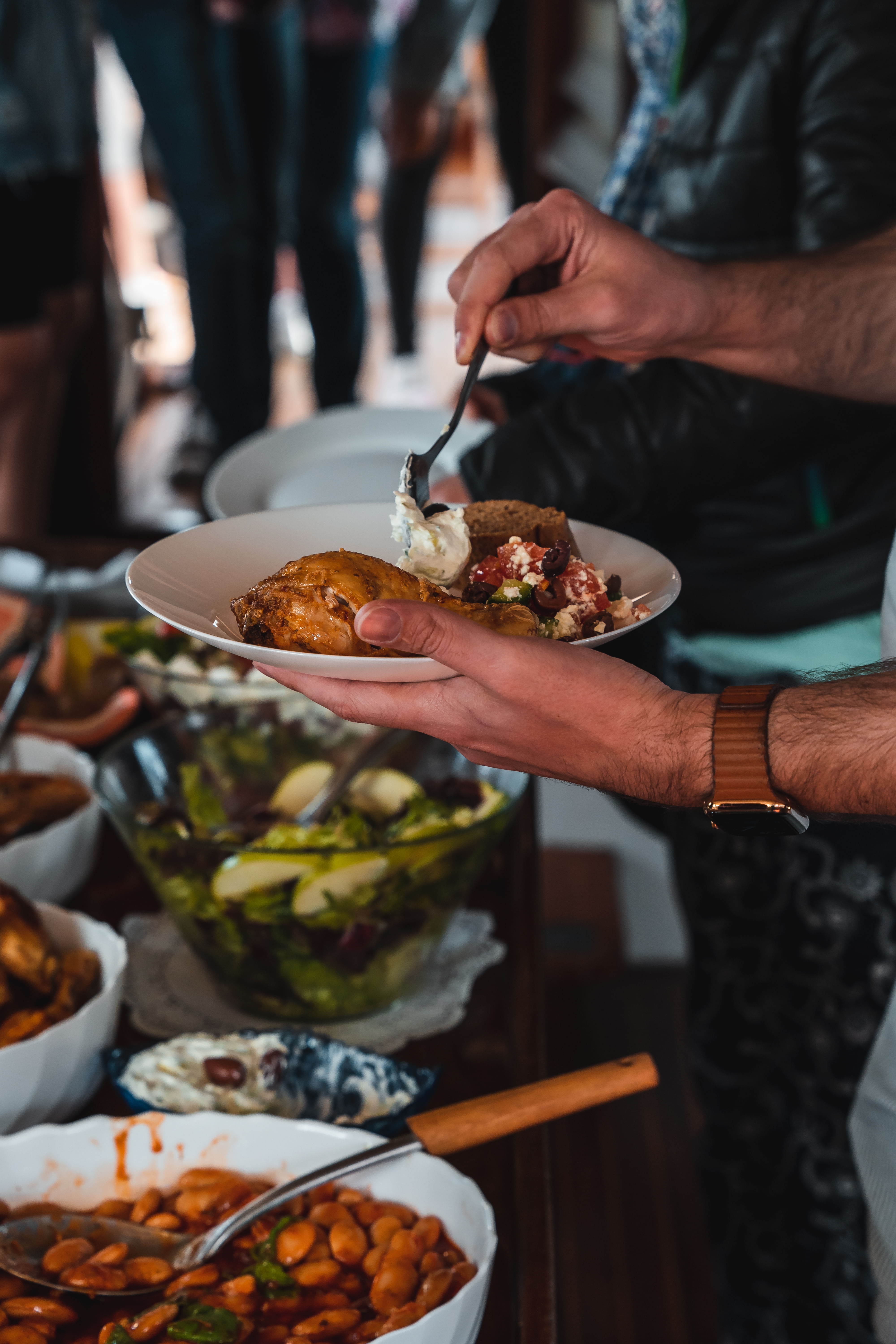 On board, it smells like summer. Our chef is cooking up a Greek buffet — local, fresh, honest food. You’ll eat well. You’ll drink better. Unlimited wine, cold beers, soft drinks, coffee — it's all on us.
