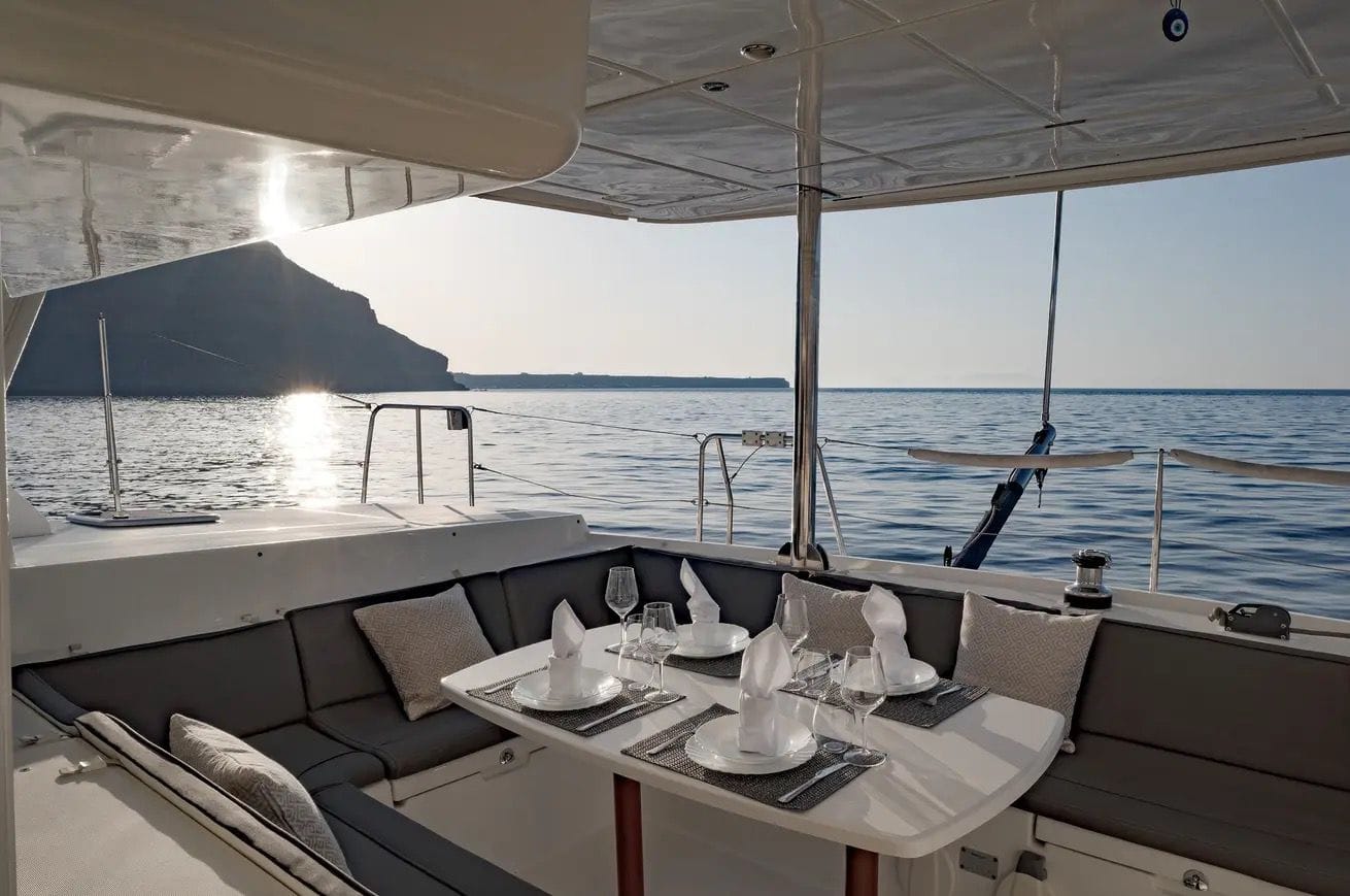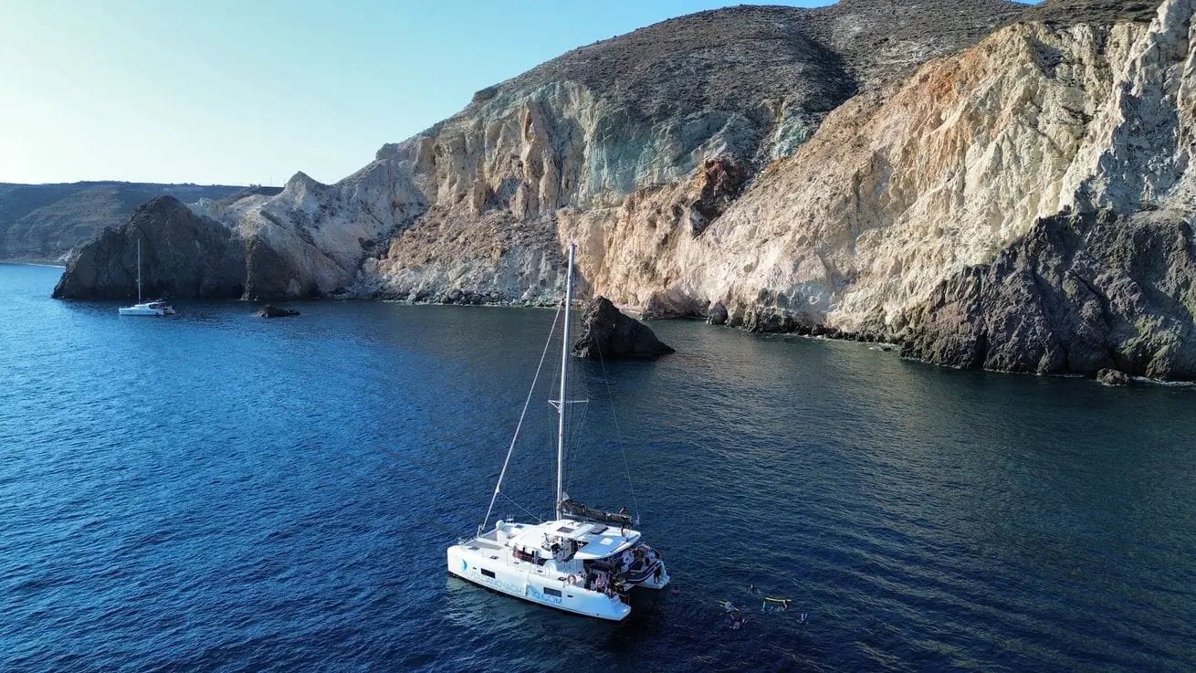 Private Full-Day Lagoon 440 Catamaran Cruise in Santorini